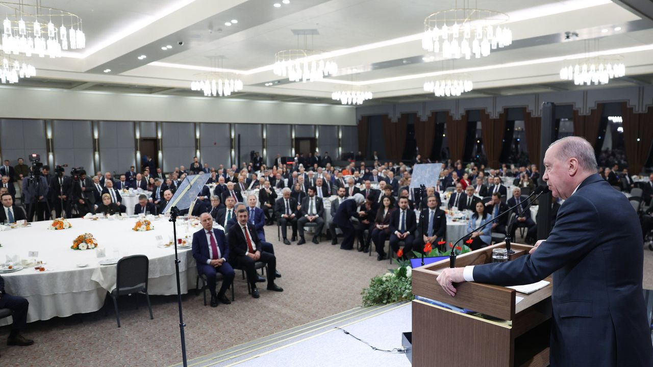 Erdoğan, başkasının zararını kendi karları olarak asla görmediklerini vurgulayarak, “Başkalarının açısından rant devşirmek gibi bir hesabın içinde olmayız. Bizim İran krizindeki tavrımız gayet berraktır ve nettir. Türkiye her zaman savaşın değil barışın yanındadır. Çatışmanın değil diplomasinin tarafındadır. Kaos ve kargaşanın değil huzur ve istikrarın safındadır. Düşmanlaştırmanın değil yakınlaştırmanın peşindedir. Artık bölgemizde gözyaşları dinsin, çatışmalar dursun, sulhü sükun hakim olsun istiyoruz. Türkiye olarak ellerin tetikten çekilmesi, ateşkesin sağlanması, müzakere masasına tekrar dönülmesi için yoğun gayret sarf ediyoruz. Alev daha fazla büyümeden, ateş çemberi daha fazla genişlemeden daha fazla can yanmadan, kan dökülmeden yangını söndürmenin derdindeyiz. Ana muhalefetin başındaki zat ve avanesi gözlerini hakikatlere kapatsa da başta milletimiz olmak üzere tüm insanlık, Türkiye’nin samimi gayretlerini görmekte, çabalarımızın devamı noktasında bizleri yüreklendirmektedir. Müslümanlar olarak şuna da tüm kalbimizle inanıyoruz, Cenab-ı Hak, şerleri hayreyler. Herkesin bir hesabı varsa Allah’ın da mutlaka bir hesabı vardır. İnşallah yaşadığımız bu sıkıntılar geçecek en çok masum çocukları ve sivilleri vuran bu fırtına dinecek, bölgemizin önünde çok farklı bir ufuk belirecek, çok daha aydınlık bir şafak sökecektir. Şimdiye kadar karşılaştığımız krizlerde hem millet hem de teşkilat olarak birliğimiz, beraberliğimiz, kardeşliğimiz bizim tüm süreçlerden salimen çıkmamızı sağlayan en büyük değerlerimiz olmuştur. Allah’ın izniyle bu türbülanstan da yine birlik ve beraberliğimize sarılarak çıkacağız” diye konuştu.
